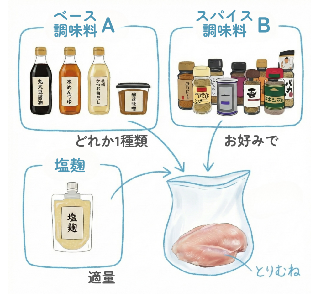 - 調味料A(ベース)|以下のうち、どれか1つ