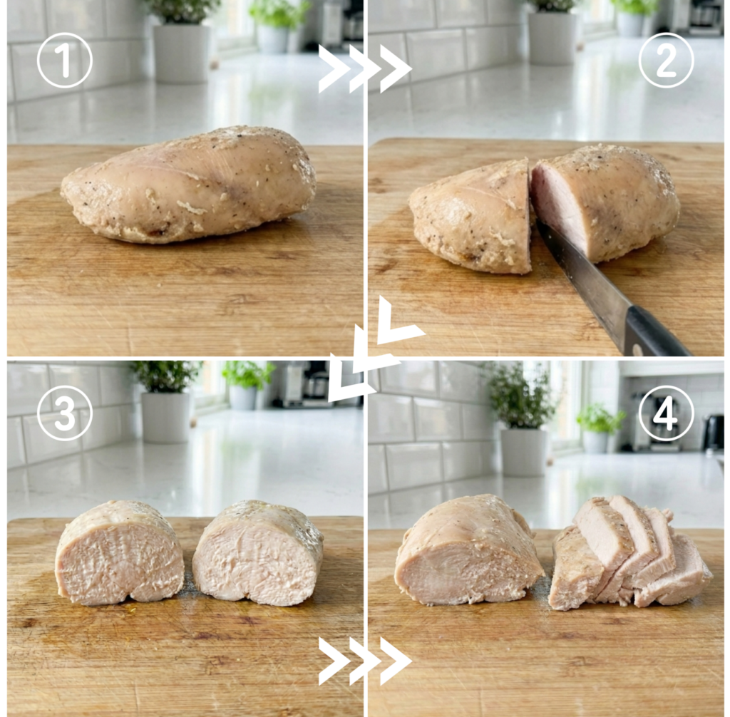 鶏むね肉の繊維の方向はめちゃめちゃ細かくいうと切る部分によって変わります。
