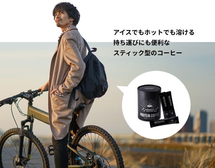 - たんぱく質 6.1g。いつものコーヒーをプロテインコーヒーに置き換えるだけで手軽にたんぱく質を補給。