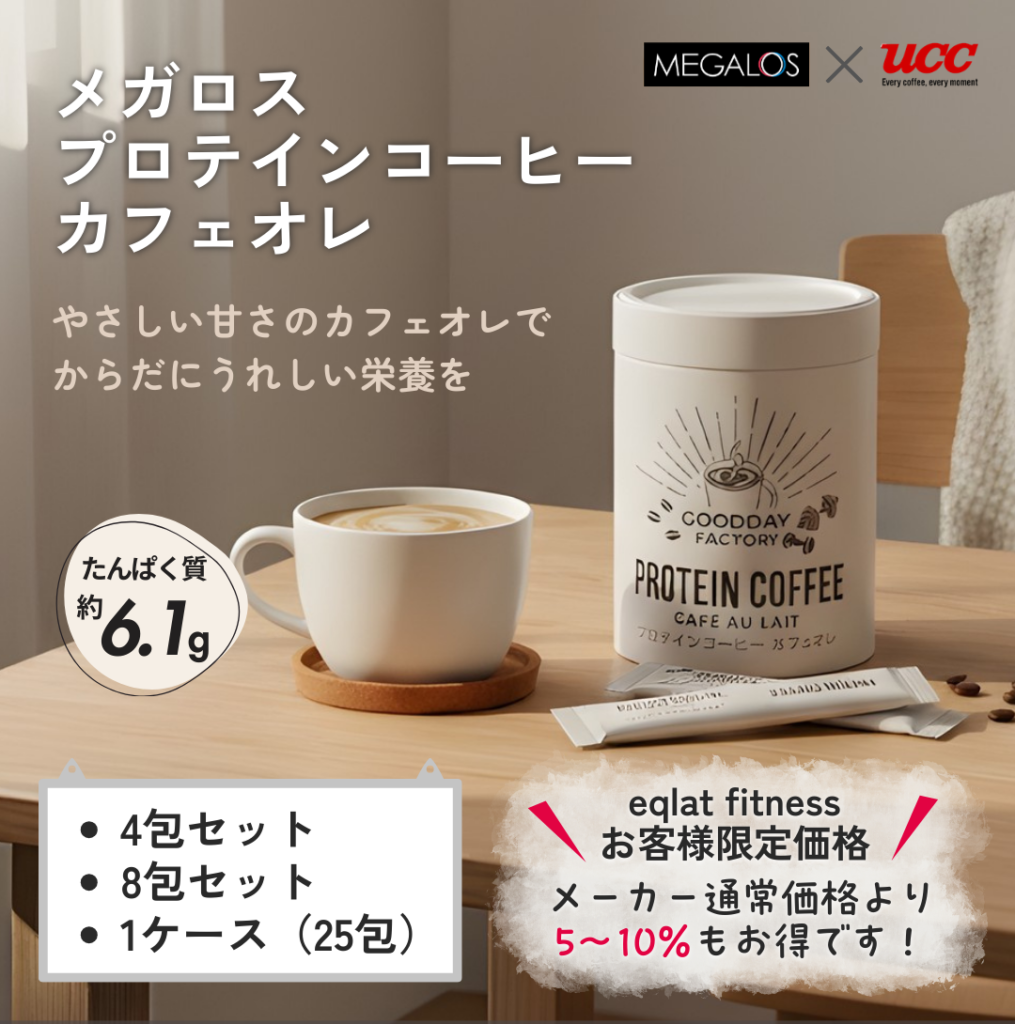 ご好評いただいているメガロスプロテインコーヒーに新しく「カフェオレ味」が仲間入りしました! 「プロテインっぽくない👀」「普通にカフェオレとして美味しい♥️」朝のコーヒータイムでもトレーニング後でもやさしく飲める一杯です...